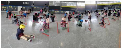 Une fois bien équipés, ils se sont élancés sur la glace de la patinoire.